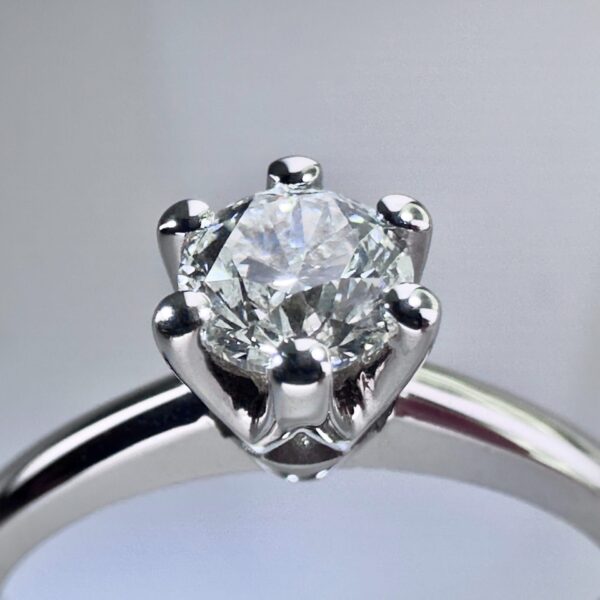 A refined 18-karat white gold ring showcasing a very rare natural white diamond, radiating elegance and timeless beauty.