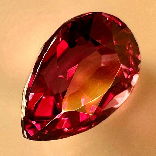 One of the rarest and most sought after garnets from a Pyrope + Spessartite mixture. Pronounced color change depending on the type of light. Very rarely offered or at very expensive prices, especially of such purity/size. Possible confusion with the famous Alexandrite. Unique piece of good size and clarity.